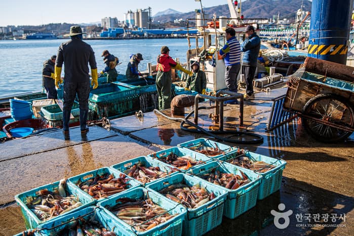Situated in Donghae, Mukhohang Port opened in 1941 and used to be the most prolific trading port on the east coast. However, with the steady change in the economy, it has now become a center of fishing. A large wholesale seafood market at the port offers a wide array of freshly caught seafood. From early in the morning, merchants across the country gather at the market to purchase fresh seafood. Dried fish are also available.
