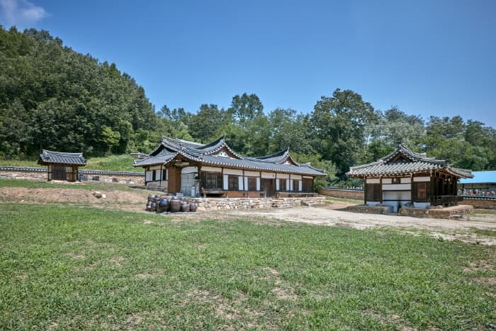 Located in Cheongsong-gun, Gyeongsangbuk-do Province, Head House of Pansagongpa Branch of Pyeongsan Sin Clan is the head house of the noble Pyeongsan Sin family line. The house was created by Sin Han-tae during the reign of King Sukjong (1674-1720) of the Joseon dynasty. Since its construction centuries ago, the house has been inhabitated by the descendants of Sin Deuk-cheong, the 15th eldest grandson of General Sin Sung-gyem. This house has all of the features of an upper–class house of the Joseon period. The buildings of the house are built in a rectangular shape, with the courtyard in the center. The compound consists of Soteuldaemun (high-rising gate), Haengrangchae (servants’ quarters located next to the gate), Gotgan (storeroom in which grain and other items were stored), Anchae (room for the female family members) and a pavilion.