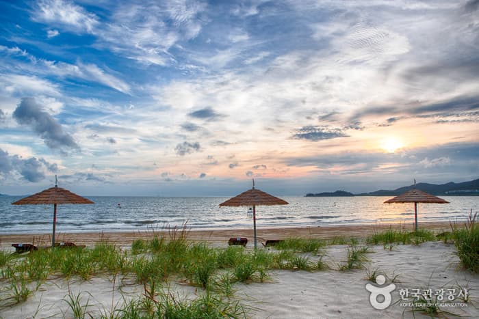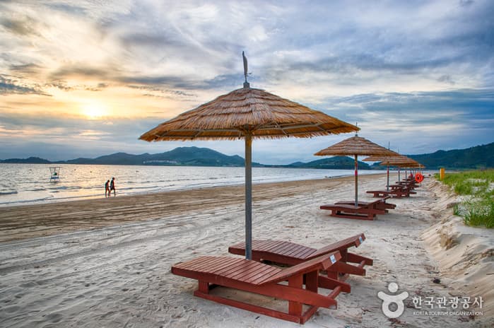 Ujeon Beach stretches 4 kilometers in length on the southwestern coast of the island of Jeungdo, the biggest natural salt producer in Korea. The silvery white sand as well as the view of the sealine dotted with over 90 deserted islands make Ujeon Beach one of the most attractive seaside destinations. Clean waters and pine tree forest provide perfect shade for summer visitors. The beach is rich with germanium, holding Germanium Festival every summer.