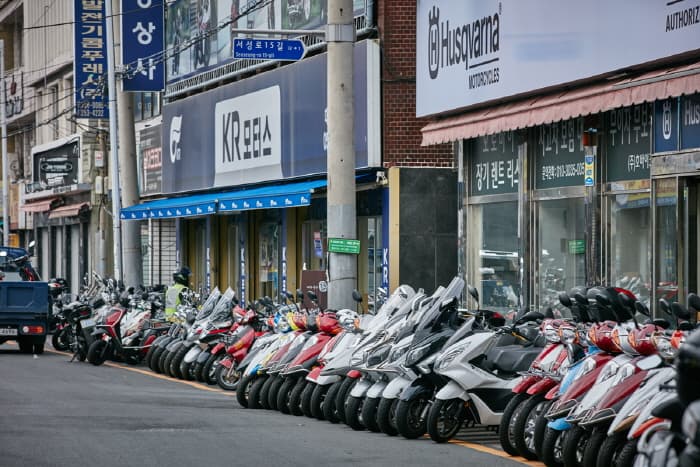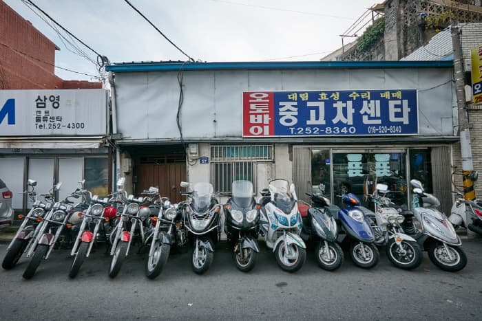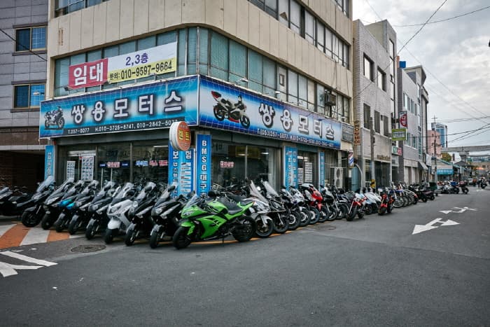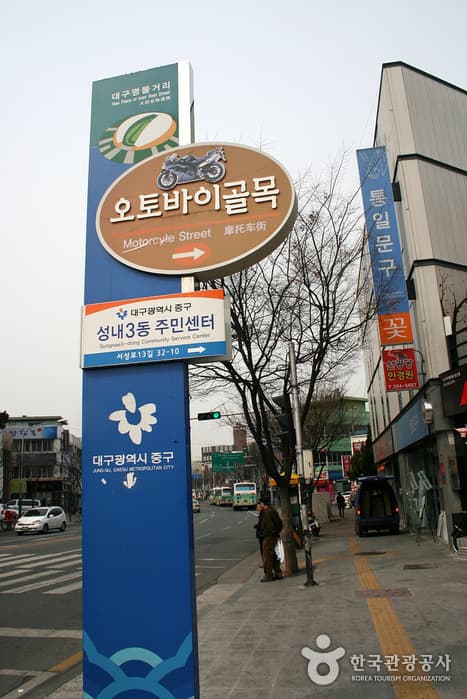 Currently there are 40 motorcycle stores, making this 200-meter-long street one of Daegu’s most unique shopping areas. Shoppers can find a vast array of new and secondhand motorcycles both domestic and imported, as well as a wide selection of motorcycle parts and accessories.