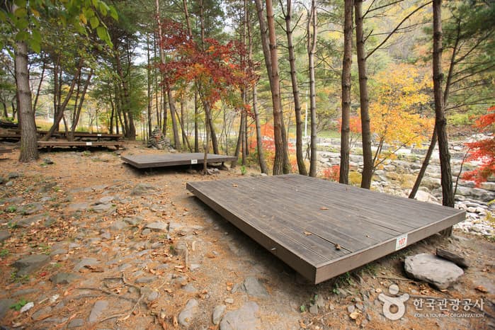 Dutasan National Recreational Forest is located at the foot of Dutasan Mountain, which rises 1,357 meters above the sea level and straddles the border between Jinbu-myeon of Pyeongchang-gun and Jeongseon-gun. The recreational forest is in the center of many popular attractions, including Odaesan National Park, Woljeongsa Temple, and beautiful valleys. The robust and rich forest is filled with a wide variety of animals such as badgers, raccoons, boars, and hares, as well as abundant medicinal herbs, and trees such as huge birch, nut trees and lime trees.
