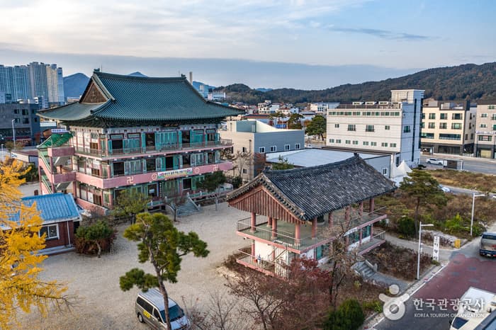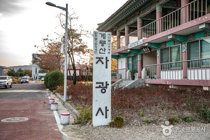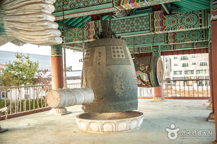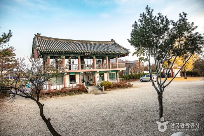 Upon entering the temple area, visitors will find to their left the Seongjeonnyeongdangji Memorial Stone, which serves to commemorate Song Siyeol and his school. Next to the memorial stone is a pond in which carp swim lazily around lotus flowers. From the white wooden chair in front of the pond, there is a large bell to the left and main Dharma Hall to the right.