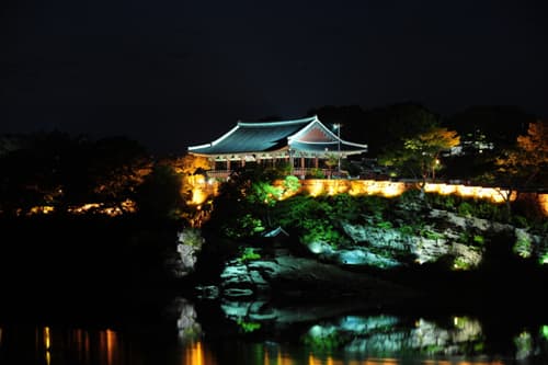 Standing grandly above the rocky cliffs of Namgang River is Chokseongnu Pavilion, arguably one of the most beautiful nugak buildings (multi-storied structure without walls) in the Yeongnam region. Chokseongnu (historically known as ‘Jangwollu’) has undergone eight renovations since its establishment in the 28th year of King Gojong (1241, Goryeo dynasty) and was once used as a commanding post for defending Jinju Palace in times of war. During times of peace, it was used for holding state examinations.