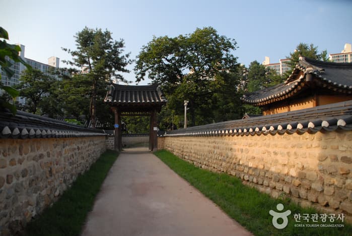 Dongchundang Park was once the residence of Song Jung-gil, a noted scholar during the Joseon dynasty. Dongchundang Residential Compound (Treasure) has kept some of its original features including its three ponds, pavilions, old swings, and the nameplate written by Uam Song Si-yeol in 1678 in honor of Song Jung-gil. Today, the park is the main venue of the annual Dongchundang Culture Festival along with other local festivals.