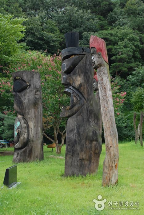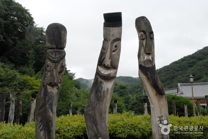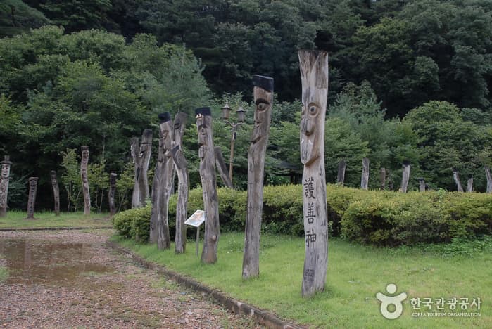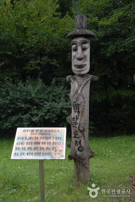 Jangseung Park on Chilgapsan Mountain is the largest preservation area for "jangseungs," the ancient wooden or stone totem poles that were usually placed at the village entrance to ward off evil spirits. It was established in May 1999 to counter the dwindling awareness of the artifacts, and houses some of Korea's tallest jangseungs (11.5 m) as well as replicas of indigenous totem poles from across the world. Today, it continues to host the Annual Chilgapsan Mountain Jangseung Festival, and serves as an important site of Korean history learning.