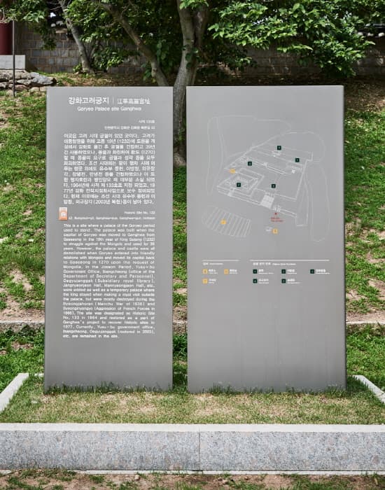 Goryeogung Palace Site on Ganghwado Island is the site of the royal palace where the people of the Goryeo dynasty (918-1392) resisted the Mongolian invasion for 39 years. In the 19th year of his reign, King Gojong moved the capital to Ganghwa on account of its natural and strategic advantages. During the Byeongjahoran (Chinese invasion of Korea) in 1637, the palace was lost by force to the Qing dynasty of China. Later, Joseon Dynasty palace building and Ganghwa Yusubu (Ganghwa governor’s office) buildings existed in the Goryeo palace site but were destroyed by the French army during the Byeonginyangyo (French Campaign against Korea). Nowadays, the only structures that remain are the Dongheon main office (built in 1638) and Ibangcheong administration office (built in 1654). The palace and its subsidiary buildings were restored in 1977. It has historical lessons of the spirit of independence and overcoming national crisis.