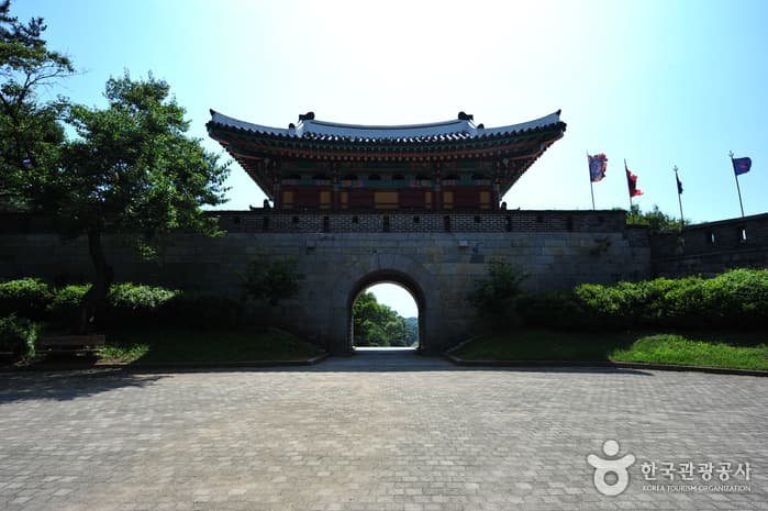The battlefield ruins of the fortress and the gate towers such as Anhaeru, Gwangseongdon, Sondolmokdon, and Yongdudon were repaired