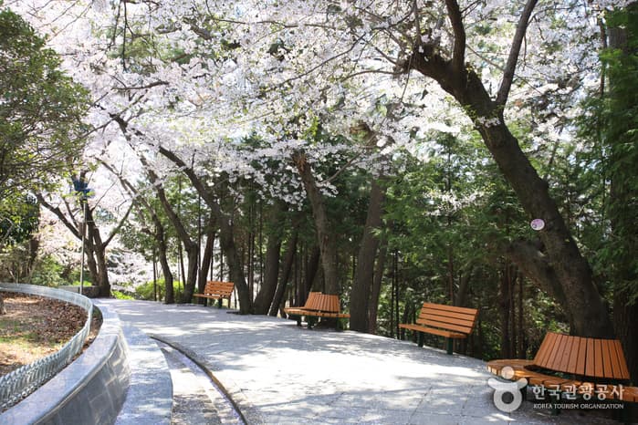 Jehwangsan Park, located on Jehwangsan Mountain at the heart of Jinhae, is home to the nine-story Jinhae Tower. The tower, which symbolizes a Korean naval warship, stands at the top of a 365-step staircase and commands a splendid view of both the city and the coastline. On the first and second floors of the tower is the Jinhae City Museum, exhibiting folk models and relics excavated from Jinhae.