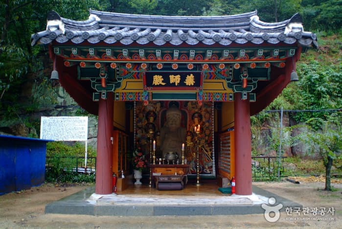 Deokjusa Temple is a branch temple of Beopjusa Temple, the head temple of the 5th district of the Jogye Order. The temple is believed to have been established in 597 AD by Princess Deokju, the last princess of the Silla Kingdom. According to legend, Princess Deokju stayed at the site with Prince Ma-ui and built the temple, naming it after herself, along with the cave nearby. However, there are no records to confirm or refute these claims.