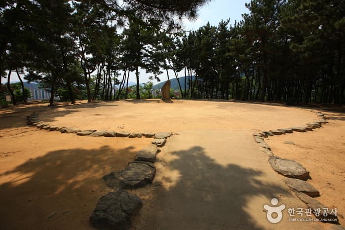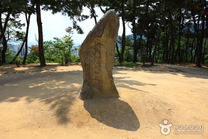 Gujibong Peak in Gusan-dong, Gimhae in Gyeongsangnam-do is believed to be the birthplace of King Suro, the founder of the Gaya kingdom. The peak was originally named Gusubong (“gu” meaning “turtle,” “su” meaning “head”) after its resemblance to the head of a turtle. The flat part of the peak (the turtle’s “head”) is home to the Tomb of King Suro. On the summit is a southern-style dolmen dating back to the 4th century BC that consists of 5 or 6 support stones and a large cover stone measuring 2.5m in diameter. The cover stone bears the inscription “Gujibongseok,” said to be written by Han Ho.