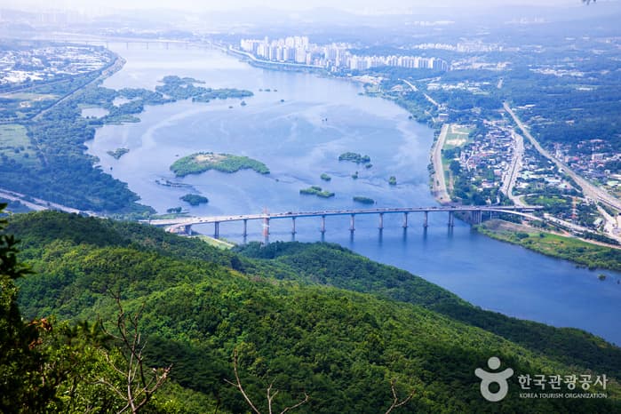 Due to its proximity to the Seoul Metropolitan Area, it is a popular day trip course. Getting there is easy and the hiking trails, which are not too difficult, are well maintained. From the summit, one can get a great view of Bukhansan Mountain and Dobongsan Mountain in the distance. Hikers can also see Paldang Dam to the east, Yongmasan Mountain to the south, and the Jungbu Expressway to the west.