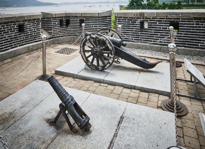 The watchtower was fortified in the Joseon dynasty by King Sukjong in 1679 and had once fallen during the French campaign against Korea in 1866. In 1977, the site was restored to its original form. The cannons exhibited at the current site were made during the Joseon dynasty to attack outside invaders from sea.