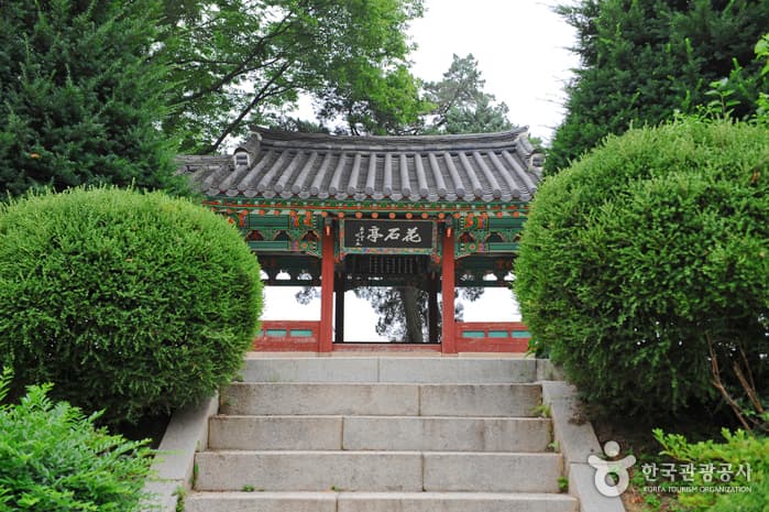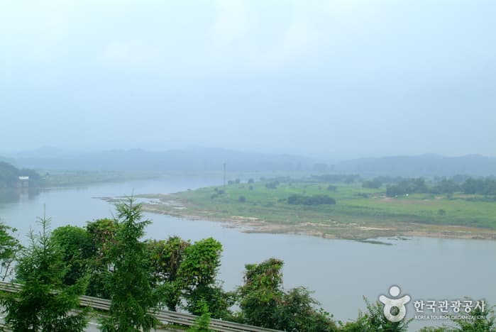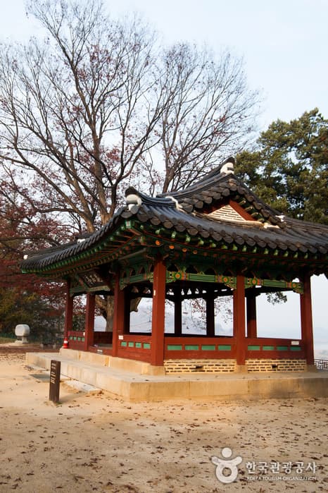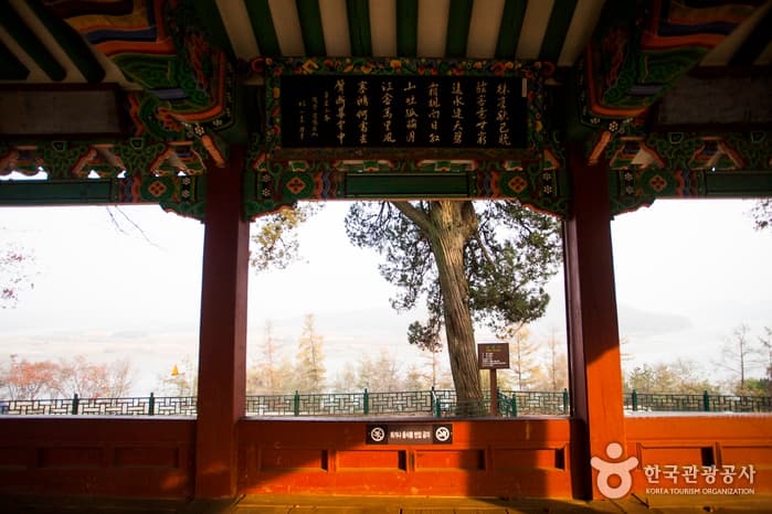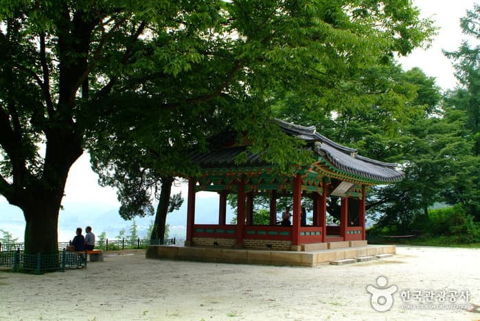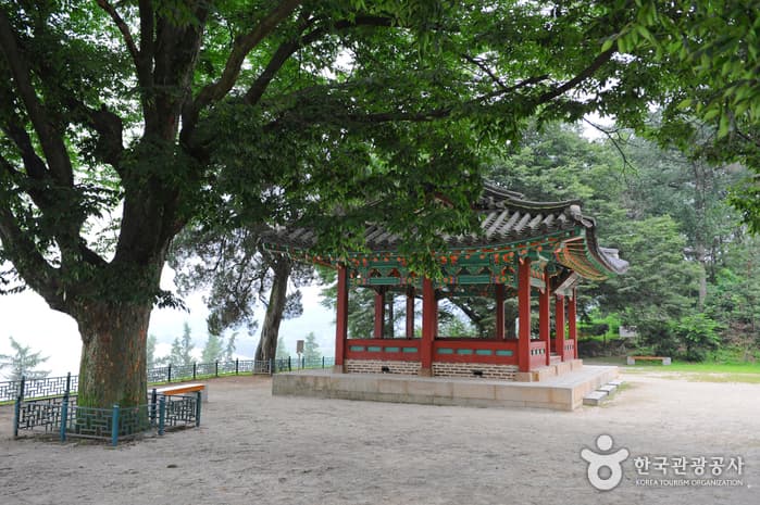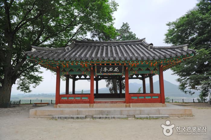 Hwaseokjeong Pavilion was built in honor of Gil Jae, a Goryeo dynasty Confucian scholar who had resigned from his government post to train young scholars. Overlooking the Imjingang River, the pavilion provides a good resting area dotted with zelkova trees.