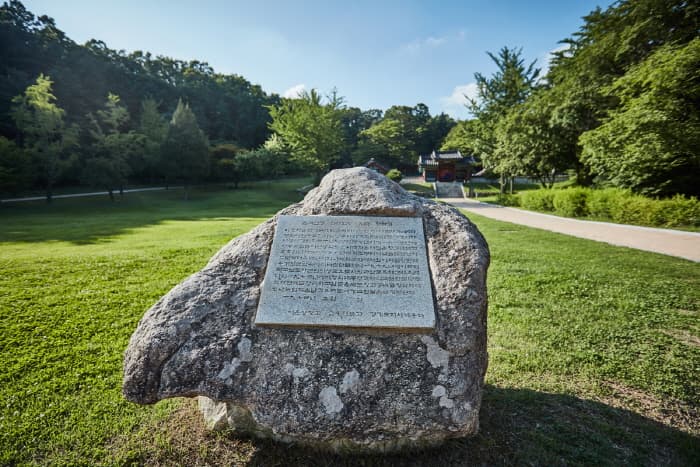 Jaunseowon Confucian Academy is home to the tablets of Yulgok Yi I and his family’s graveyard, located at the foot of Jaunsan Mountain. Jaunseowon Monument and Memorial Stone of Yi I Scholar are located here as well. Yulgok Memorial Hall displays his goods, and his biography. In February 2013, Jaunseowon Confucian Academy and the tombs of Yulgok Yi I and his mother Shin Saimdang were individually designated as Gyeonggi-do Cultural Assets, but the whole area as a whole is a designated National Historic Site under the name Historic Site related to Yi I.