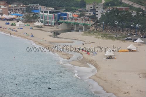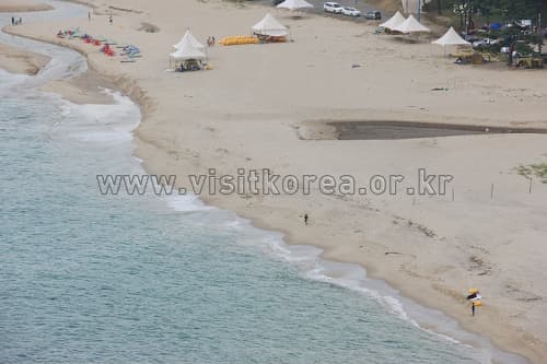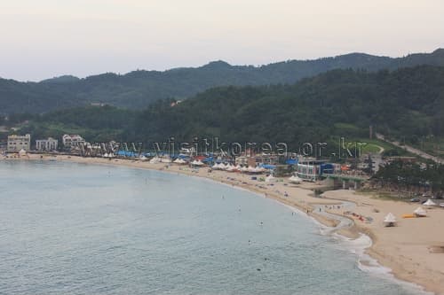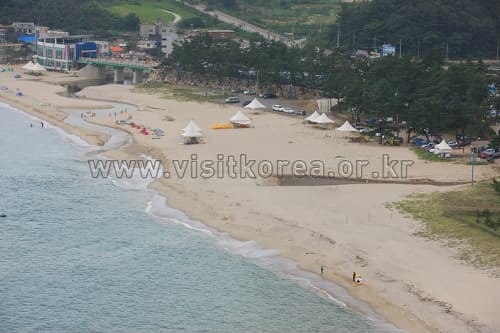 Reaching only 1 kilometer in length and located 24 kilometers away from downtown Samcheok-si, Yonghwa Beach offers a serene atmosphere. In addition to Yonghwacheon Stream that runs out through the beach and a lush pine forest to its back, the beach boasts a scenic view with a half-moon shaped shoreline and unique rock formations on both sides. The beach is mostly visited by those looking forward to a quiet vacation by a fishing village and families with children who prefer shallow water.