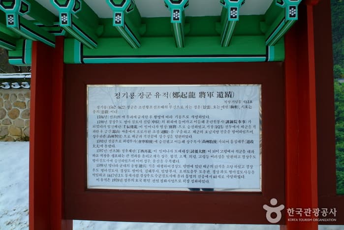 Chunguisa Temple is home to the tablets of General Chung Ki-ryong, a great army general who led during the reign of Joseon King Seonjo. In 1974, the temple and related relics were designated as a Regional Cultural Asset Monument. The area was expanded in 1978 to include a museum which displays Relics Related to Jeong Gi-ryong, a designated Treasure. The temple also hosts a reenactment of the recovery of Sangjuseong Fortress every October.