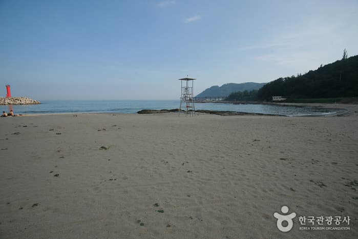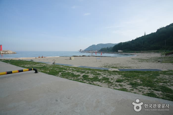 Gyeongjeong Beach is famous for its serene and clean water with gentle waves. The southern part of the beach is made of rocks. Visitors should avoid swimming in the waters since they are used as an aqua farm for growing marine products such as sea cucumbers, abalone and sea squirts. The beachside road is a perfect driving course with the view of the horizon.