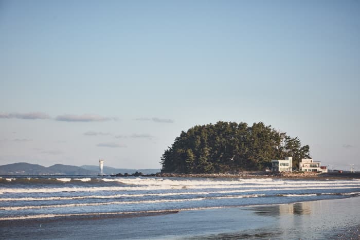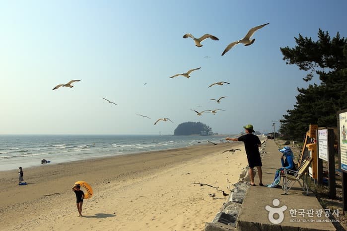 Mageompo Beach in Nam-myeon, Taean-gun is located right before the bridge that leads to Anmyeondo Island. As the beach is not widely popular among tourists, one can spend a quiet and tranquil vacation here. Near the beach is a dense pine tree forest where one can enjoy camping. The white sand and shallow waters also make it a good place for kids to swim. In the evening, the beach is a great spot to watch the breathtaking sunset.