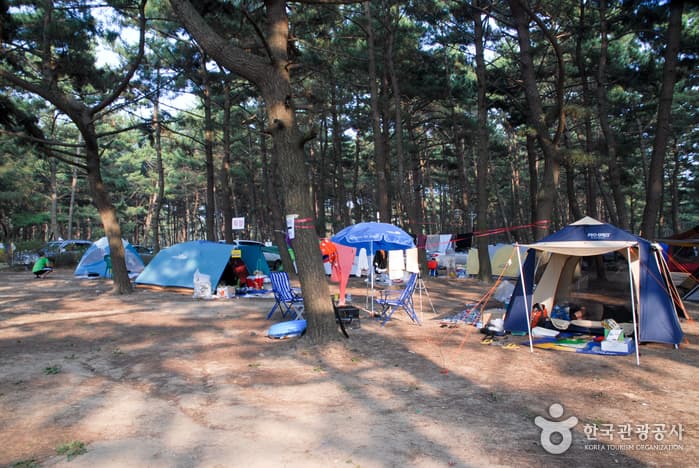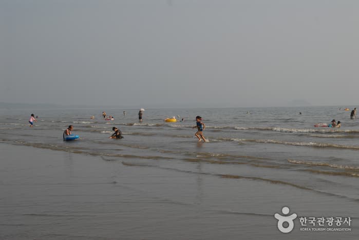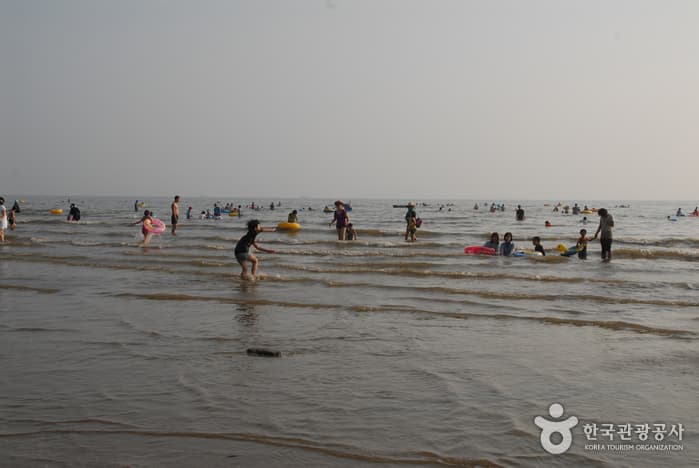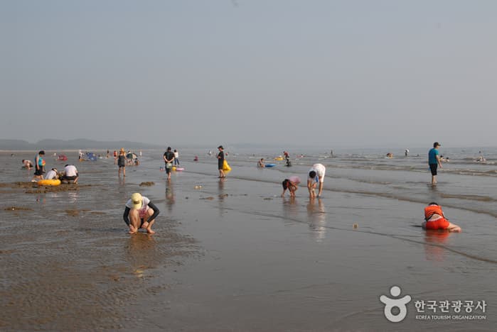 Mongsanpo Beach, part of Taeanhaean National Park, stretches 18 kilometers southwest of Seosan, 9 kilometers south of Taean and along the west coast of the Nammyeon Peninsula. Mongsanpo's white sand beach is around 3 kilometers long and has a 5 degree tilt. The water is 1~2 meters deep with an average temperature of 22 degrees Celsius.