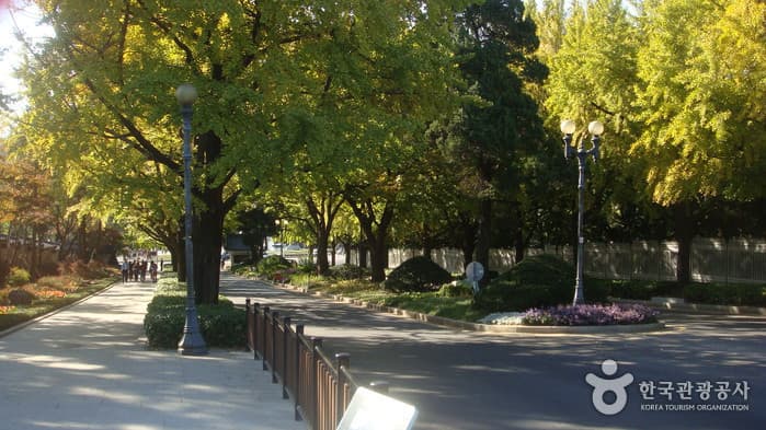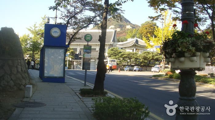 The street in front of Cheongwadae (the Blue House) is open to the public and includes both Hyoja Samgeori (Hyoja three-way intersection) in Hyoja-dong and Palpan Samgeori (Palpan three-way inetersection) in Palpan-dong. When walking along Hyoja-ro Road from Gyeongbokgung Station, sights include a fountain, Mugunghwa Garden, Yeonmugwan Hall, and Daegogak & Yeongbingwan Hall.