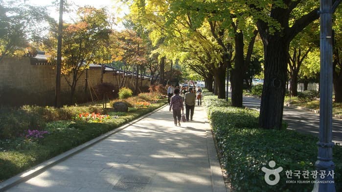 At the beginning of the street in front of Cheongwadae, dense trees and beautiful flower gardens decorating both sides of the road make it a nice place for taking a walk. The area from the north gate of Gyeongbokgung Palace, Chunchumun, to the main gate of Gyeongbokgung Palace, Geonchunmun, is Samcheongdong-gil Road. This road is home to many art galleries, including Kukje Gallery, Growrich Gallery, Gallery Hyundai, and Jin Art gallery, in the area of Hyoja-ro.