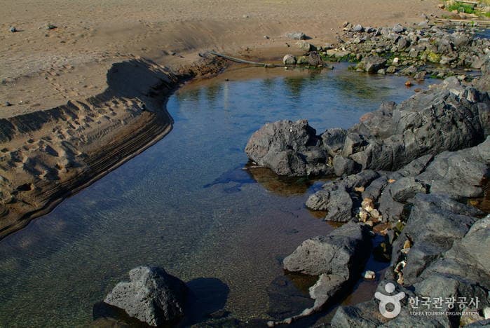 Hwasun Golden Sand Beach is surrounded by beautiful nature. It is close to Sanbangsan Mountain and the Yongmeori Coastline, and the islands of Hyeongjedo, Marado, and Gapado are off the coast to the southwest. On one side of the beach is a fresh water spring where people can enjoy a freshwater bath.