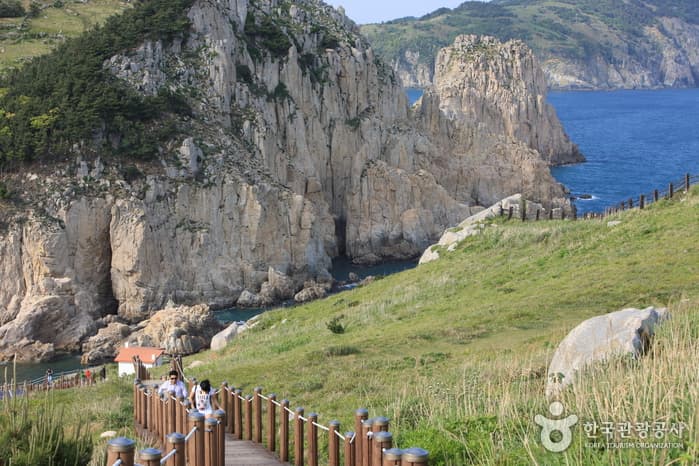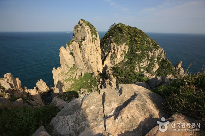Yongbawi Rock (Dragon Rock), Bucheobawi Rock (Buddha Rock), Geobukbawi Rock (Turtle Rock), Chotdaebawi Rock (Candlestick Rock) and Geulssingigul Cave are absolute masterpieces created by Mother Nature. Another must-see is the view of Somaemuldo Island from Deungdaeseom Island. From there, the rock formations look like a sitting dinosaur.