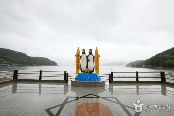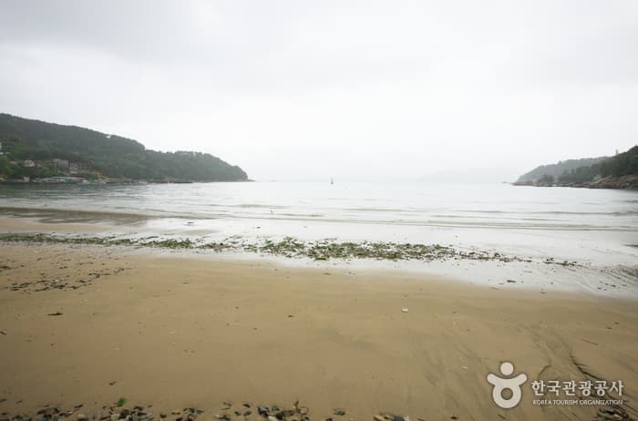 Deokpo Beach is a white sandy beach in the city of Geoje in Gyeongsangnam-do. The 450 meter-long and 40 meter-wide beach offers fine sand, clear waters, a gentle slope and old sea pine trees along the coast. Nearby attractions include the Okpo Great Victory Commemorative Park, which was built in 1996 to commemorate the victory of Admiral Yi Sun-sin, and the Okpo Shipyard of Daewoo Shipbuilding & Marine Engineering with a giant shipyard crane.