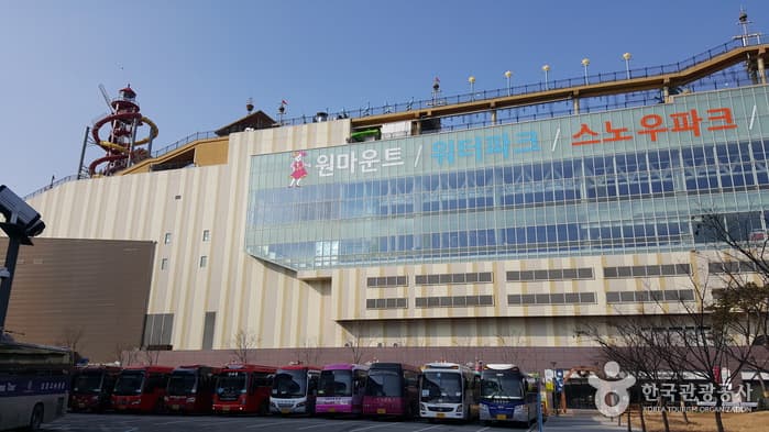 Situated near Hallyu World and KINTEX in Ilsan, Onemount is the largest multi-cultural space in the northwest metropolitan region. It is housed in three buildings with two underground floors and nine above-ground floors, for a total surface area of 161,602 square meters. Aiming to be the best playground in the world, Onemount features a shopping mall, snow park, water park, and a members-only luxury sports club, and also organizes various performances, events, and parties throughout the year.