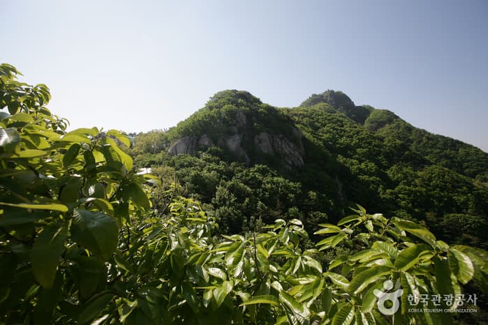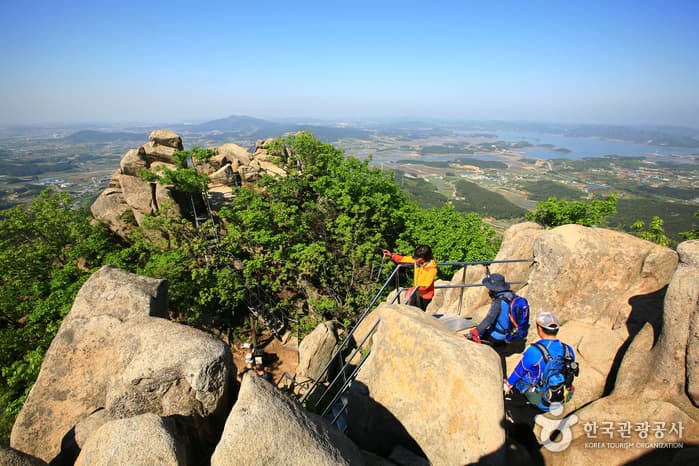 Palbongsan Mountain stretches out like a folding screen and stands high with great spirit. It is known that the mountain was named Palbong (“eight peaks” in Korean) because of its eight peaks standing in a row. There are actually nine peaks, but the smallest was not included. Legend says the smallest weeps over its exclusion at the end of every December. The third peak is the highest, standing at 362 meters with a beautiful view and crisp air, making it ideal for hiking (3-hour course) and resting at the top. There is another mountain of the same name in Hongcheon, so this mountain is usually referred to as “Seosan Palbongsan.”