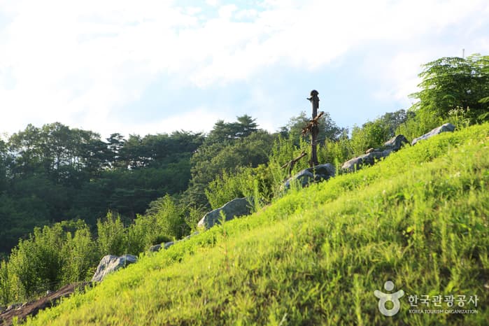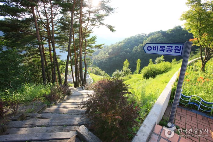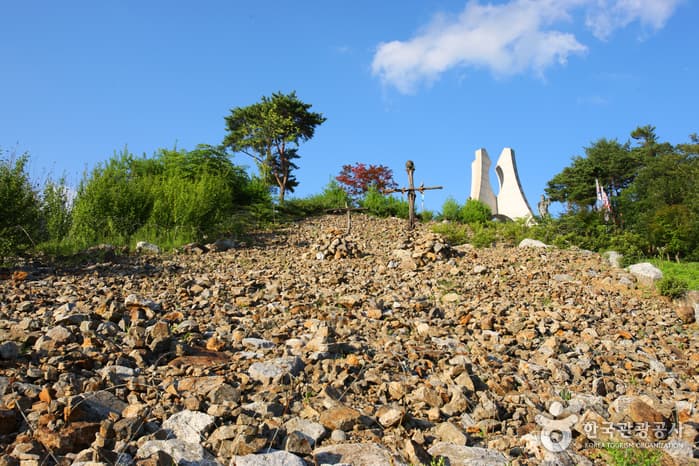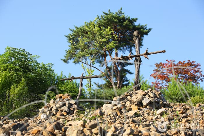 In addition to the war monuments inside the park, there are around a dozen wooden crosses with rusty iron helmets placed on top within the barbed wire entanglements around the hill, thereby reminding visitors of the national tragedy of the Korean War. The county of Hwancheon hosts the Bimok Cultural Festival from June 3 to June 6 every year at Bimok Park, Bungeoseom Island by the town’s riverside, and the surrounding areas. The four-day festival offers a variety of events such as a singing contest, memorial ceremony of poetry reading, bimok tree cutting contest, rice ball eating contest, army life experience, military music parade, and more.