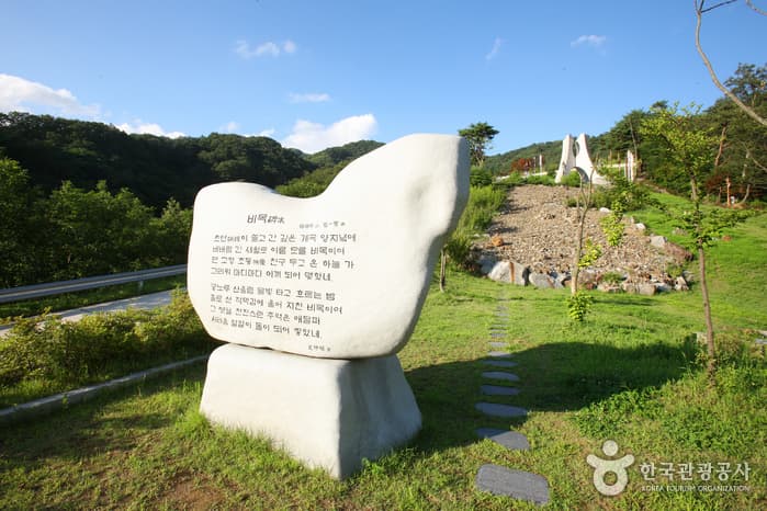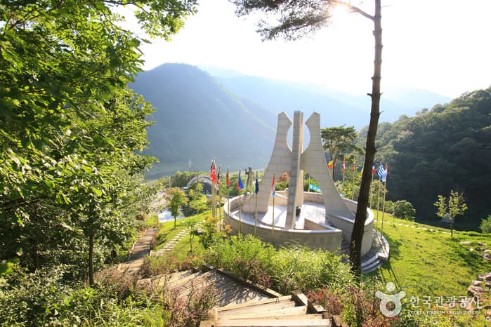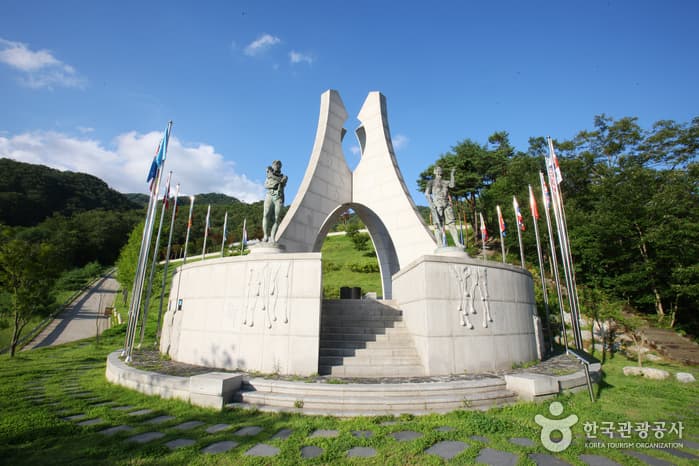 Crossing over to Yanggu County from Peace Dam, there is a national security education place comprised of attractions like the 4th Underground Tunnel and Eulji Observatory. Paroho Lake Battlefield Tourist Park is also worth a visit after looking around Peace Dam. Also known as the “ocean within mountains,” Paroho is a manmade lake created as a result of the Hwacheon Dam construction in 1944. The lake is home to over 70 different species of freshwater fish such as mandarin fish and carp. It also holds the sorrowful history of the water burial of three whole divisions of the Chinese Forces in defending the lake during the Korean War. The name Paroho, meaning “enemy breaking lake,” was given after the late president of Korea, Rhee Syngman, visited the place and designated a plaque in his own handwriting in memory of obtaining victory in fierce battle. There is an observatory, a security hall, and a stone monument engraved with the poetry of Wolha Rhee Taegeuk (1913-2003).