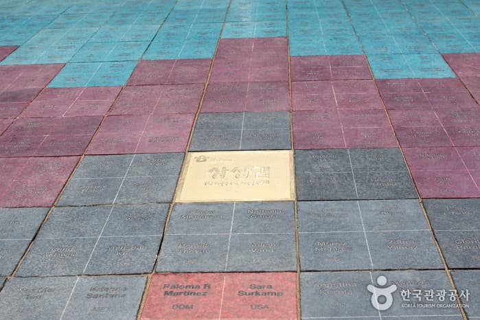 Sangsang-gil Road was created to show the beauty of Korea as imagined by the world. The title of the 150-meter-long road from Buljonggeori Road to Burim Market was given in 2015 after a global internet campaign by Korea Tourism Organization. The road is paved with 23,000 blocks engraved with the names of foreigners in five different colors that represent Korea. The road is also a famous date course with many popular restaurants along the road.