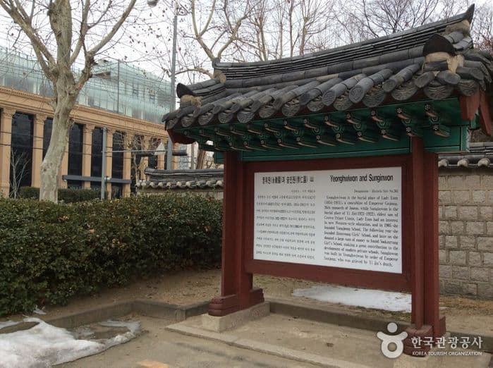 Yeonghwiwon & Sunginwon Royal Tombs house the tombs of Queen Consort Sunheon and the first son of Imperial Prince Yeong, Yi Jin. Queen Consort Sunheon was a concubine of Emperor Gojong and the mother of Imperial Prince Yeong. The tomb site was originally the resting place of Empress Myeongseong, the first official wife of Emperor Gojong, but her tomb was moved to Namyangju after Gojong's death where they are interred together.