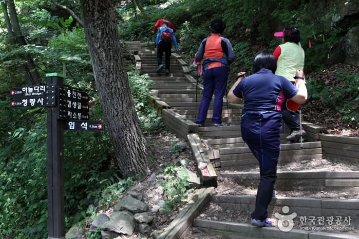 Behind the Cheongnyangsan Provincial Park’s entrance boulder is a monument with a poem inscribed on it by the famous scholar Toegye Yi Hwang of the Joseon period called Cheongnyangsanga. Aside from Toegye Yi Hwang, Wonhyo and Uisang, caligraphy master Gimsaeng, scholar Choi Chi-won, and many others came to this mountain to cultivate their arts. Their presence still lingers in legends, being retold to this day.