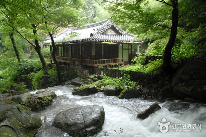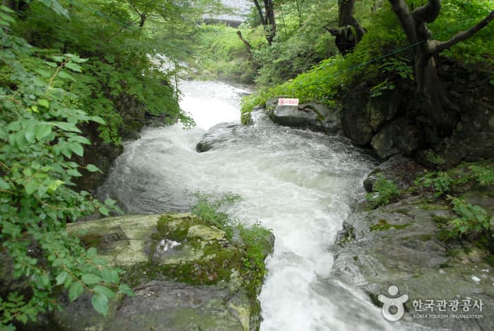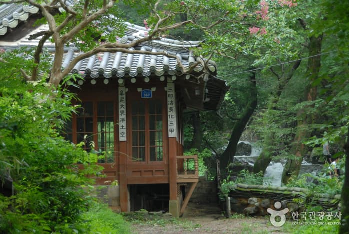 In spring, cherry blossoms bloom along the path to Donghaksa Temple, and during summer the lush green of the valley is very beautiful. During fall, the maple trees reveal their crimson colored leaves around Gapsa Temple and Yongmunpokpo Falls. The snowcapped peak of Sambulbong in winter is simply breathtaking. Gyeryongsan is full of rare animals and plants, beautiful waterfalls and a rich history with mysterious legends and cultural treasures. To the east is Donghaksa Temple; northwest, Gapsa Temple; southwest, Sinwonsa Temple; and southeast, Yonghwasa Temple.