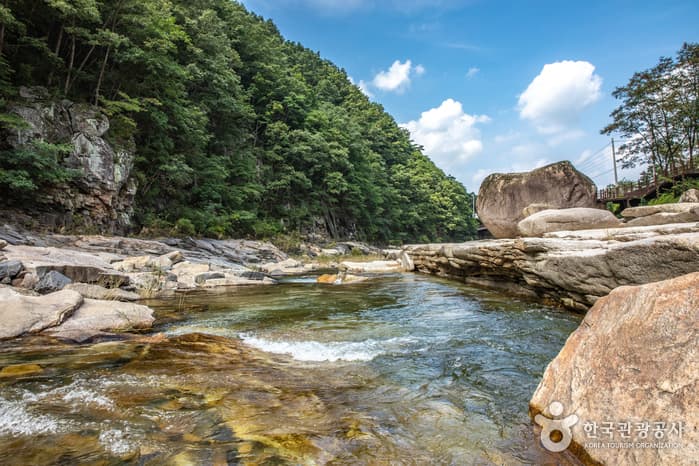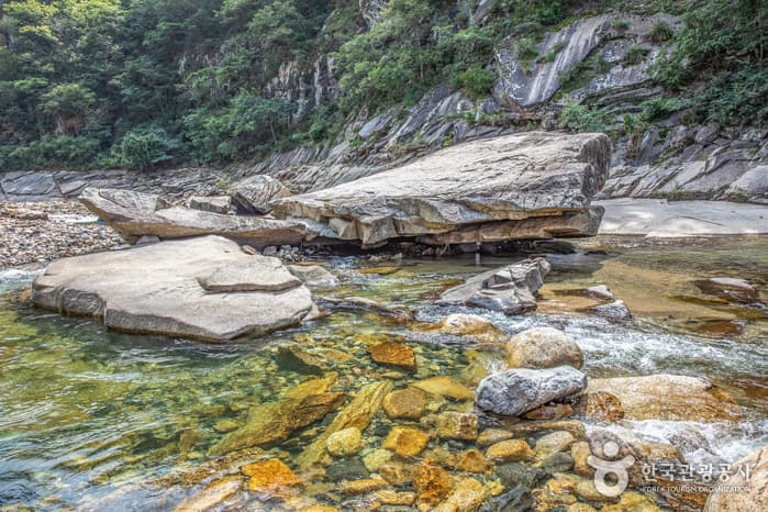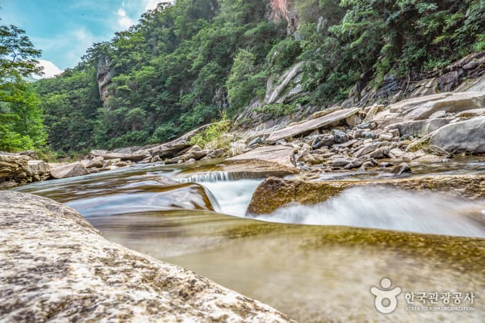 Seonamgyegok Valley is a clean 10-kilometer valley stretching from Gasan-ri to Daejam-ri in Danyang. Among the Eight Scenic Views of Danyang, Teukseonam Rock and Soseonam Rock are located here. This valley is known for its dense forests, strange rock formations, and clear and clean valleys, and is one of the best destinations in summer to camp and play in the water. Nearby attractions include Soseonam Recreational Forest, Teukseonam Camping Site, Soseonam Amusement Park, and Special Seonam Camping Site.