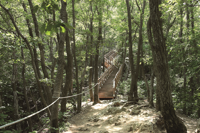 Chilgapsan Mountain, located in Cheongyang-gun, Chungcheongnam-do, was designated as a provincial park in 1973. This mountain, 561 meters above sea level, has been called “The Alps of Chungcheongnam-do.” Chilgapsan Mountain area has many peaks, a thick forest and beautiful valleys. Each season has its own unique atmosphere. There are romantic cherry blossoms in spring, vivid green leaves in summer, autumn tints in fall and a snow-covered landscape in winter. Mountaineers visit all year round and can choose from seven courses.