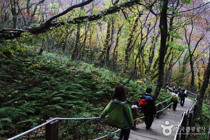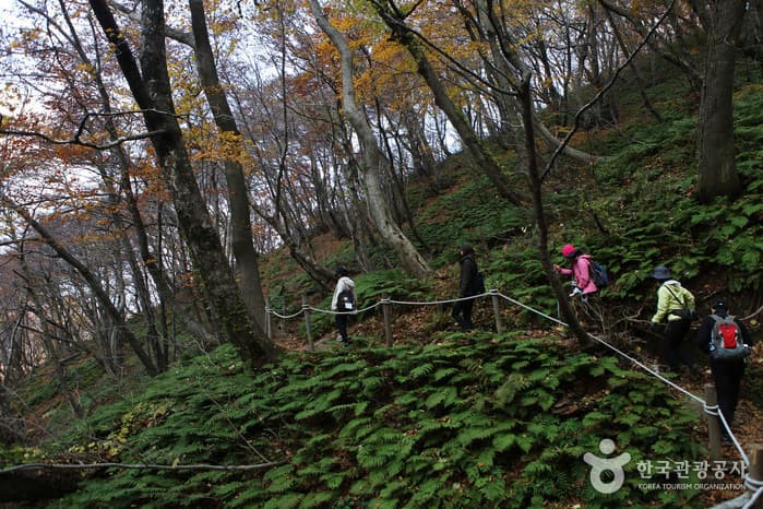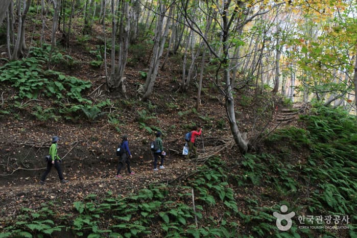 The foot of Seonginbong Peak is covered with thick primeval forests designated as Natural Monument No. 189. This forest is Ulleungdo Island's only flat area with a diameter of approximately 2 kilometers. It is a caldera formed by volcanic activities and developed over time. The area has many rare plants only found in Ulleungdo Island.