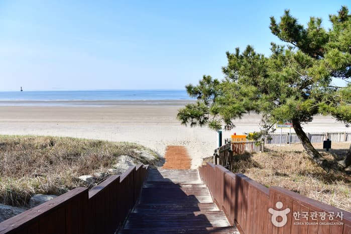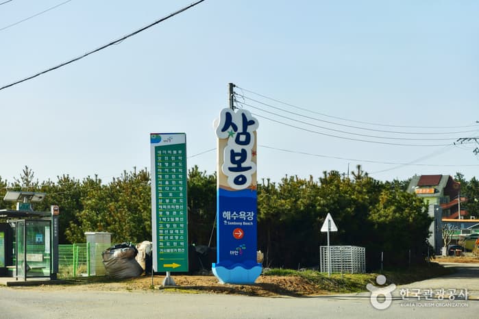 Sambong Beach is located to the south of the bridge that connects Nammyeon and Anmyeon-eup. The beach stretches 3.8 kilometers and has a x_width of 300 meters. The beach gently slopes down at a 6° angle and has an average water depth of 1.5 meters with a temperature of 22° C. The three Sambong Rocks, the Haedanghwa flower (plena) and the rich pine forests are just a few of the beautiful and magnificent features of this beach. Also, the beach attracts many visitors during summer because it has convenient transportation making it easily accessible.