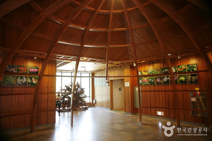 Korea National Arboretum covers an area of 1,157㏊ and contains 15 specialized forests, including Conifer Garden, the Garden of Ornamental Trees, and the Aroma and Touch Garden. The Forest Museum is the largest in Asia, covering 4628 sq.m² with a traditional Korean design, and the interior and exterior are both constructed of wood and stone. The arboretum facilities consist of 5 exhibition halls (Living Forest, Forest and Man, Forestry of the World, Forestry of Korea, Nature of Korea), a Herbarium, a Special Exhibition Room, and an Audio Visual Hall.