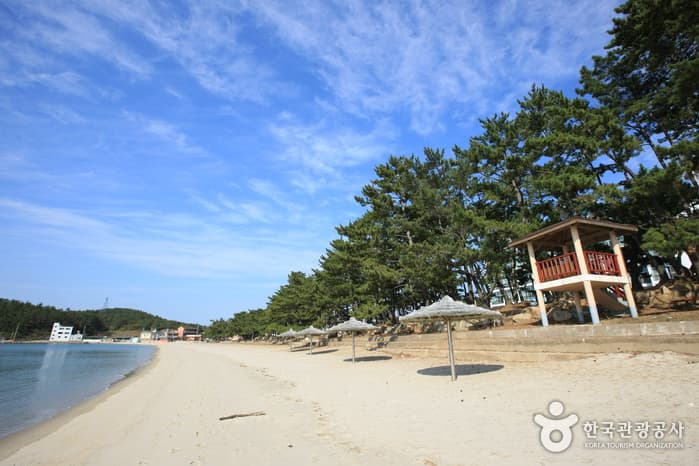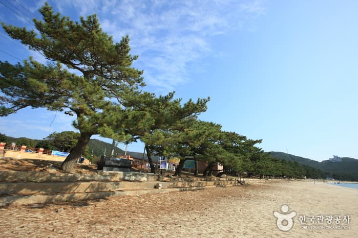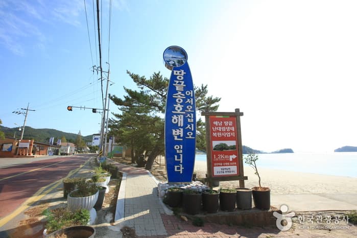 Songho Beach is the most representative beach in Haenam and was named so for its dense old pine trees, fine sand, and shallow water resembling a lake. The fine sand and shallow waters make it the perfect beach for families. Hundreds of pine trees create a scenic forest reaching almost 1 kilometer along the levee which provides a suitable camping site under in the forest. The Ttangkkeut Trail that starts from Songho Beach auto-campgrond connects to Galsan Village and Ttangkkeut Tower.