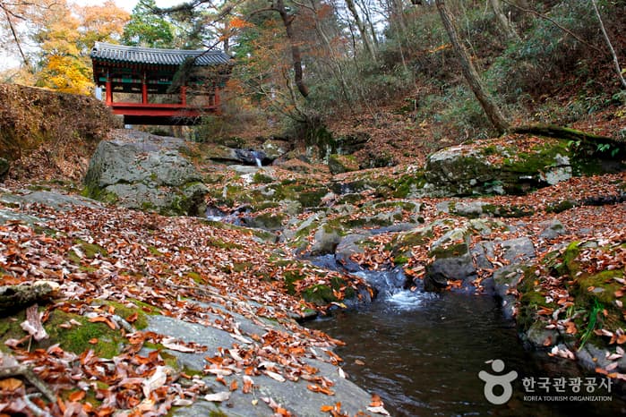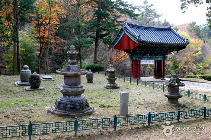Located on the foot of Dongnisan Mountain, Taeansa Temple was built by three monks during the reign of the Silla King, Gyeongdeok (742). Afterwards, Monk Hyecheol constructed a large temple with 132 rooms during Goryeo Taejo’s reign, which was established as a central seminary of the Dongnisan Mountain area. In the precincts there are four treasures, including Hyecheolguksa Sari Pagoda, Gwangjaseonsa Pagoda and Neungpagak. The temple was badly damaged during the Korean War and had been refurbished since then. An invigorating valley and a shady nook can be reached just 1.8 kilometers from the entrance of the temple. It is a popular trail during the fall, with its bright maple leaves.