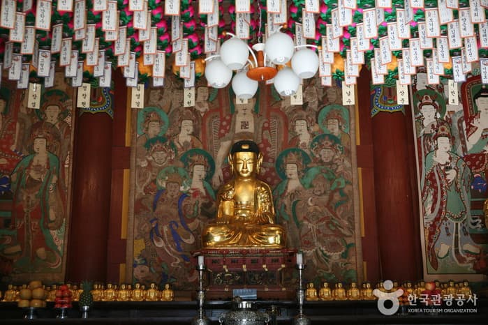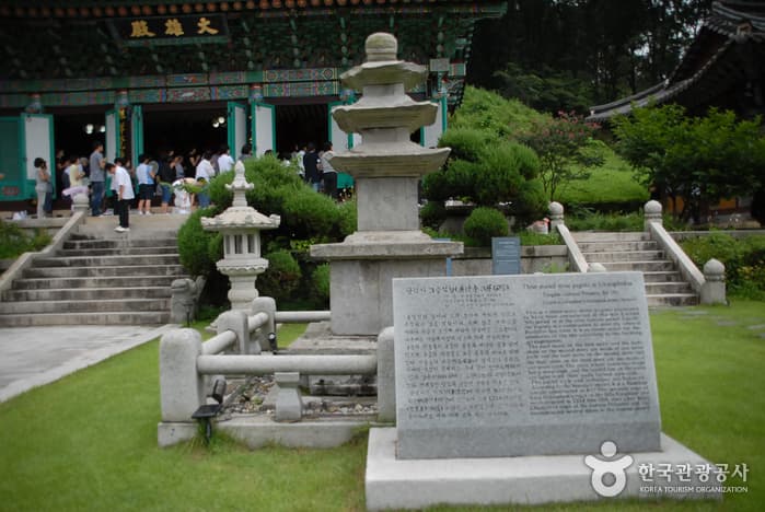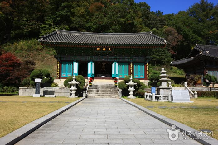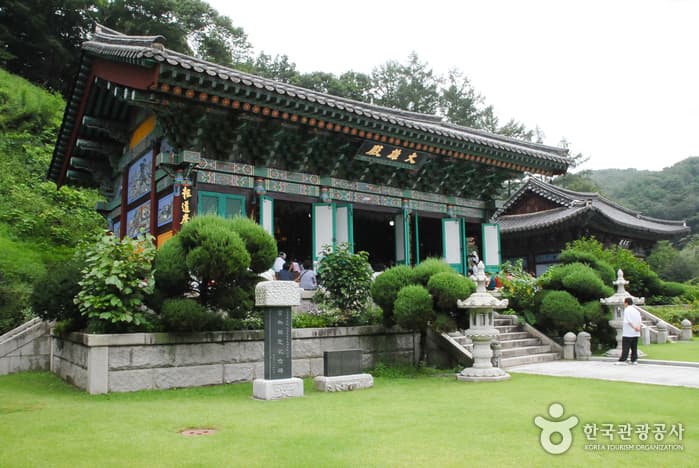 Gwangdeoksa Temple is said to be established in 637 by Monk Jajang Yulsa during the Silla Kingdom and was refurbished during the reign of King Heungdeok (832). The temple sits in the southeast of Gwangdeoksan Mountain, which borders Asan-si and Cheonan-si, and the southwest of Taehwasan Mountain. It was the biggest temple within Chungcheong and Gyeonggi regions before the Japanese invasion. However, it was burnt down during the Japanese invasion and the main buildings such as Daeungjeon, Myeongbujeon and Cheonbuljeon Halls are relatively new compared to the other original facilities.