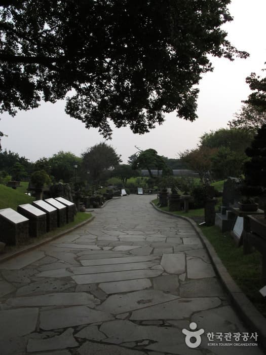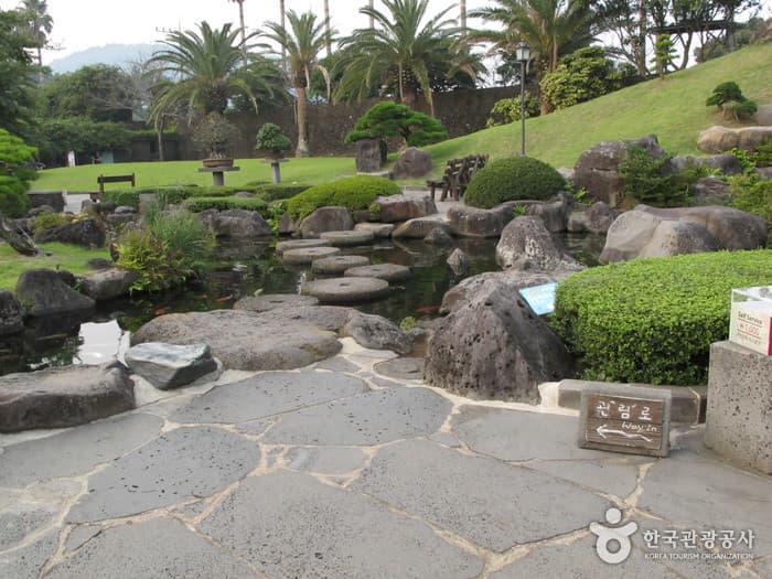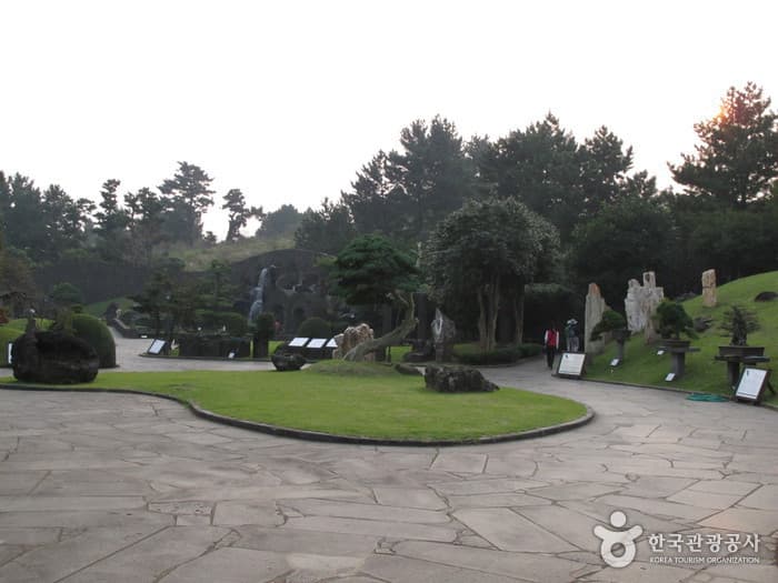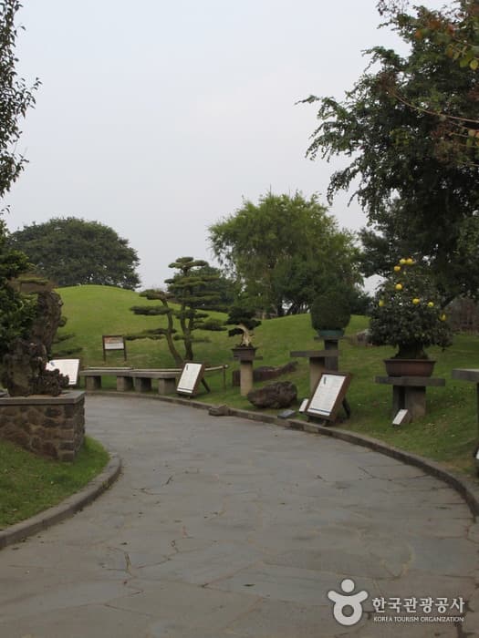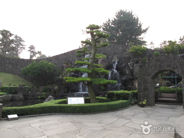 Spirited Garden is home to hundreds of bonsai plants in a natural garden with the theme of oreum (volcanic cone) and water. The name changed from Bunjae Arpia in 2007 to commemorate the 15th anniversary after opening and to renew the garden as an international garden. The history of the garden started in 1963 when Seong Beom-yeong, the founder of the garden, came to Jeju and cultivated the wasteland full of rocks. The garden came into the international spotlight as the beautiful space was created from the wastelands by a single farmer. The garden has been visited by many honored public figures such as Jiang Zemin and Hu Jintao from China, Nakasone from Japan, Kim Yongsun from North Korea and others. Currently, about 400 planted trees are on display. Also, visitors can see various facilities including stone walls and stone towers stacked with Jeju volcanic stones, the largest artificial waterfall in Jeju, and a pond filled with large carp at the base of the the waterfall.