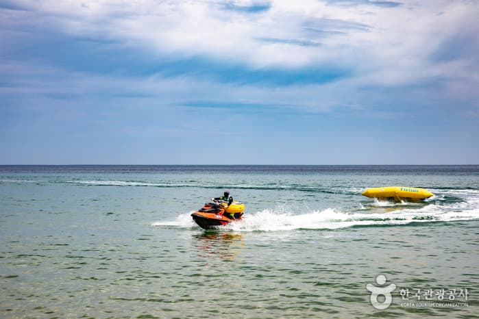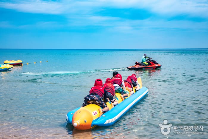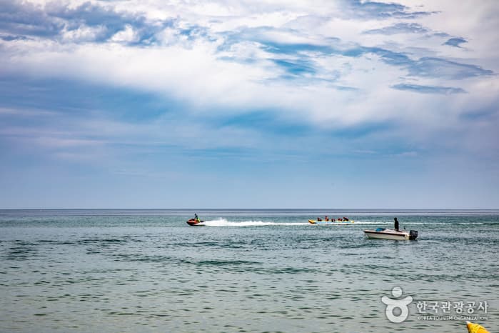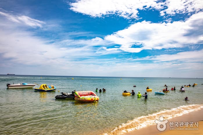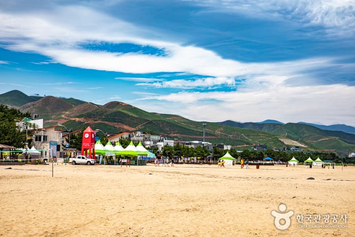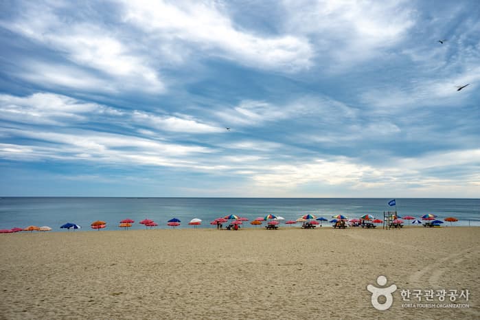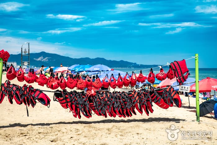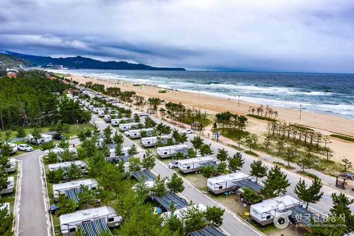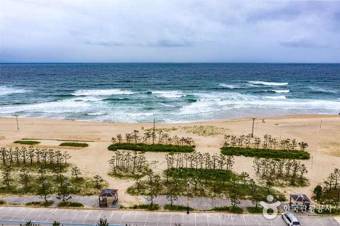 Mangsang Beach is sought out by many families and tourists for its beautiful white sand, lush pine forest, shallow waters, and location in a neighborhood full of convenient facilities. Mangsang Beach is located 3 kilometers north from Mukho Port and it represents the east coast, along with Okgye and Gyeongpo Beaches.