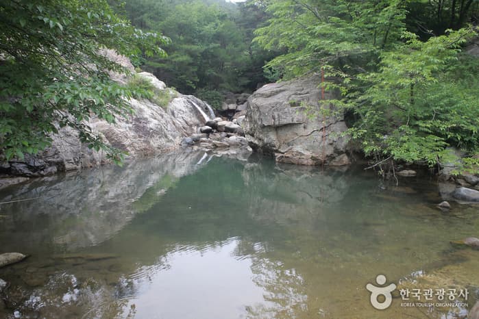 Near Seonyudonggyegok Valley, they say that the bamboos and pine trees stay green all year long and wood nymphs fly down to play with each other under the Suwolpokpo Falls in Suwol Village.