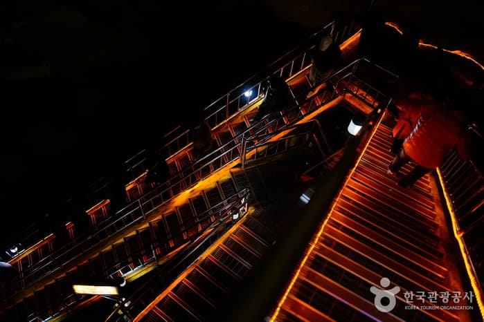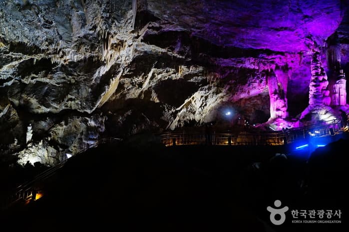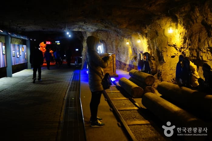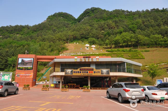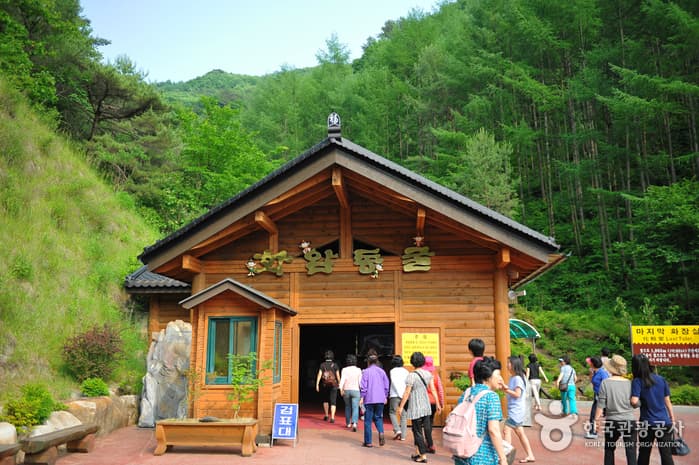 Hwaamdonggul Cave was originally a gold mine that was commercially operated from 1922 to 1945 as the nation’s fifth largest gold mine. However, the cave was found to have natural stalactites, and was later developed into the only theme-based cave that combined gold and nature. The ticket booth and the cave's entrance is located apart from each other, and visitors can either hike or ride on monorail to the entrance point. Hwaamdonggul Cave is not only a tourist attraction but also an educational venue where visitors can learn about the subterranean ecology of a stalactite cave and the process of gold mining and refining.