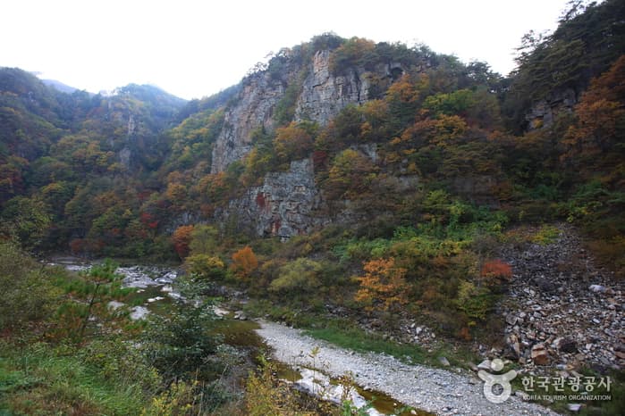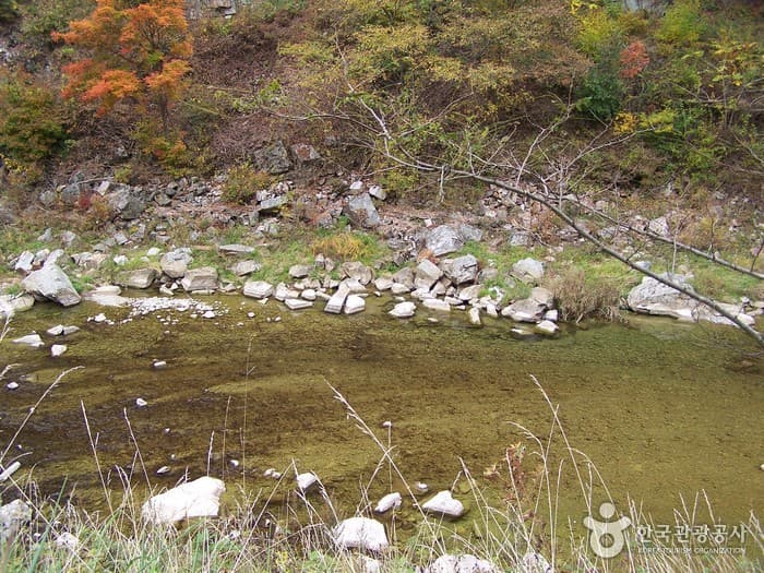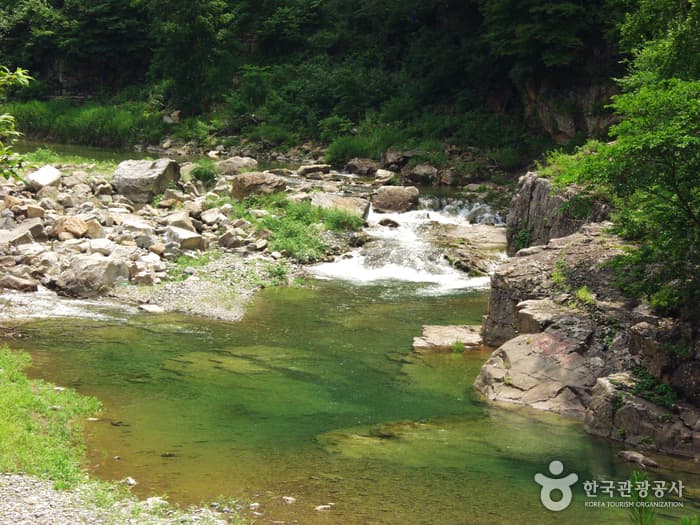 Sogeumgang River is lined with high rock cliffs topped with lush forests. This section of river is so beautiful, it is called "Little Geumgangsan River," with Geumgangsan Mountain being known as the most breathtaking location in all of Korea. Visitors can find a number of famous rocks along the river.