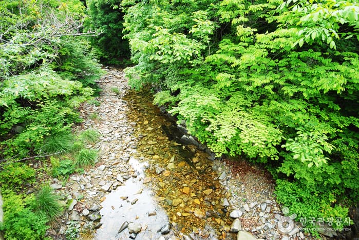 Located in Odaesan National Park, Sambong National Recreational Forest is filled with large acicular trees like fir and broad-leaved trees like birch. Lenoks, a species of freshwater fish that are considered a Korean natural treasure, found only in the cleanest water, thrive in the waters of the deep valley running through the park. The park is surrounded by three peaks – Gachilbong Peak (1,240 meters), Eungboksan Mountain (1,155 meters), and Sasambong Peak (1,107 meters). Sambong Mineral Spring is found In the middle of the three peaks. The spring’s waters are said to ease stomach complaints. The park is also popular since visitors can see beautiful fall foliage in autumn while enjoying the mountains and sea at the same time in summer.